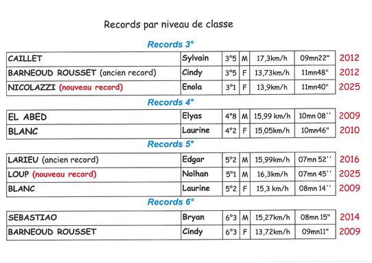 RECORD PAR NIVEAU DE CLASE