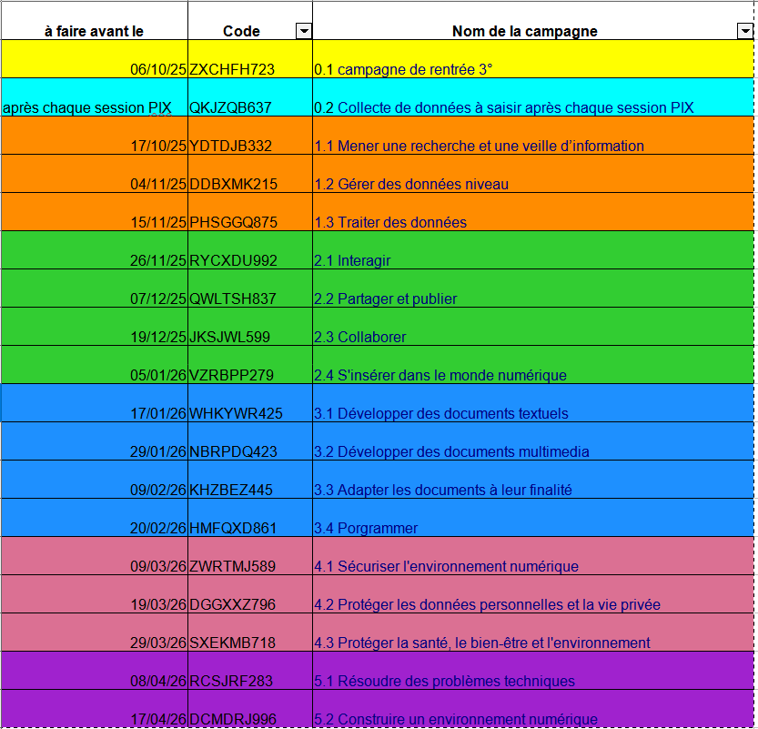 Tout au long de l'année vous devrez entrer des codes de campagne afin de travailler vos compétences numériques.